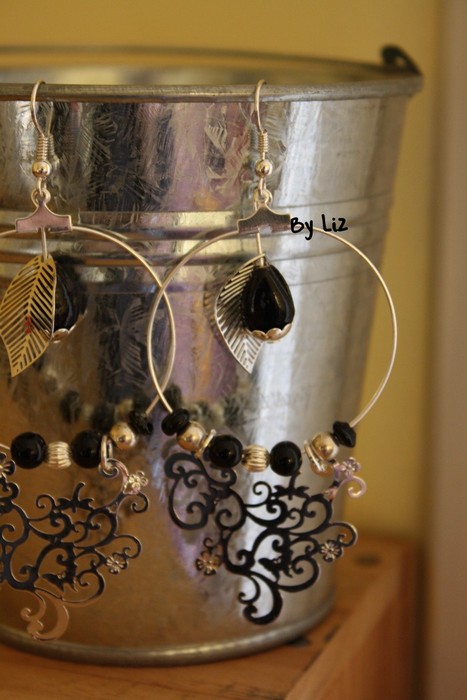 J’ai souhaité une version plus light car je les trouvais un petit peu chargées pour mon goût. J’en ai donc décliné des créoles noires et argentées, légères, agrémentées des jolies arabesques et de la petite feuille que j’ai déjà utilisé et que j’aime tout particulièrement…