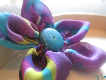 Cette fois, j’ai trouvé la solution de récup pour réutiliser ces beaux tissus. J’ai fouillé sur Internet pour trouver comment réaliser des fleurs en tissu. J’ai trouvé de nombreux modèles, mais celui sur lequel j’ai vraiment craqué je l’ai découvert sur le blog sous les figuier de Sophie. On y trouve le tuto pour réaliser cette fleur en tissu. Le plus ? Même pas besoin d’être une grande couturière ! J’ai réussi toute seule comme une grande !
